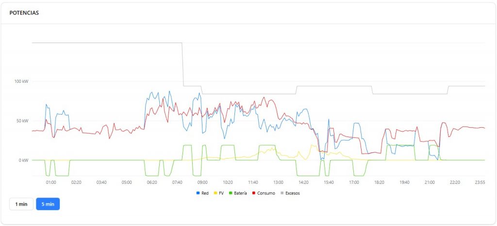 • Monitorización en tiempo real de consumos, generación fotovoltaica y estado del sistema de almacenamiento.